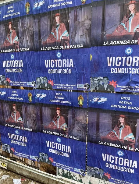 "No tenemos nada que ver. No tenemos tan mal gusto", aseguraron respecto a los afiches con fondo azul, en los que se la ve en el centro de la escena bajo el lema “Victoria conducción”. Además, se pueden leer las leyendas “Dios, Patria y Familia", la firma del Movimiento Justicialista Nacional y las figuras de José de San Martín, Manuel Belgrano, Juan Domingo Perón y José Ignacio Rucci.