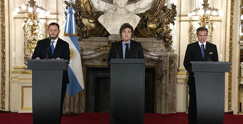 En el anuncio, difundido por la red social X, el Presidente estuvo acompañado por el jefe del Consejo de Asesores, Demian Reidel, y al Director General del Organismo Internacional de Energía Atómica (OIEA), Rafael Grossi.