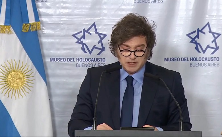 "Ojo con los que de forma banal revolean acusaciones de nazi contra quienes no piensan como ellos, tal como lo hicieron expresiones de izquierda con mi amigo Elon Musk", sostuvo el mandatario en la sede del Museo del Holocausto en alusión a las críticas que despertó el dueño de X por su saludo en la asunción de Trump.