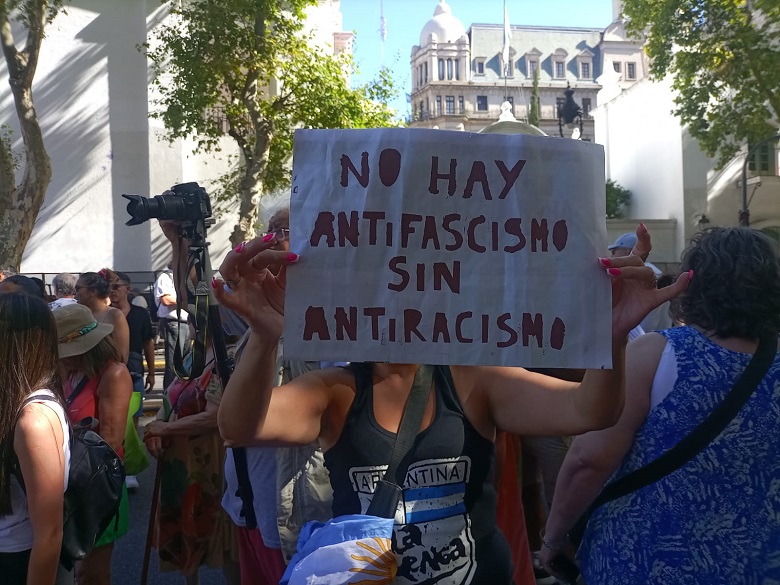La actriz y activista lesbiana en Identidad Marrón - Jujuy, Sara Pérez, celebra que esta marcha se defina como antirracista y señala: "Si nos ponemos a mirar el avance de la derecha, ¿a qué sectores afecta? Desde hace bastante tiempo que los más vulnerables tienen un color, tienen un fenotipo en la Argentina y justamente es marrón, es indígena".