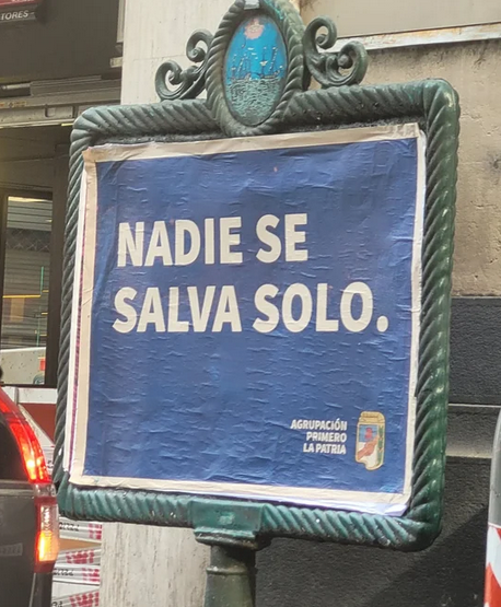 La nueva corriente dentro del justicialismo promocionó su surgimiento con una serie de afiches con los que empapeló la ciudad de Buenos Aires con consignas como "Nadie se salva sólo" o "No es libertad. Es Entrega".