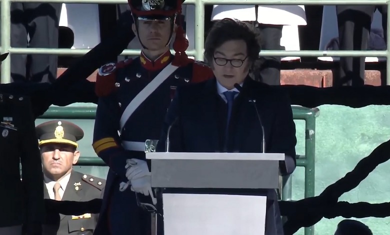 En su discurso, el Presidente reivindicó el rol de las Fuerzas Armadas (FFAA) y cuestionó políticas previas en relación a la defensa: "Durante años, la política utilizó a las Fuerzas Armadas como un chivo expiatorio para justificar la reducción del gasto en defensa, bajo el argumento de que los uniformados eran los malos y los grandes culpables de la decadencia nacional".