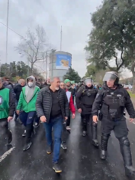 El secretario general de ATE Nacional, Rodolfo Aguiar, también presente en el lugar, mantuvo un cruce con efectivos de la Policía de la Ciudad que le exigieron movilizarse por la vereda. Desde sus redes sociales, denunció: “¡Gravísimo! La Policía nos reprime en el INTI y efectúa detenciones ilegales. Exigimos su inmediata liberación. Sepan que vamos a seguir en la calle y no vamos a caminar nunca por la vereda”.