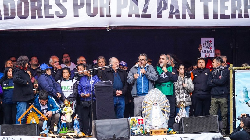 Por otro lado, los sindicalistas remarcaron que aspiran "a una sociedad con derechos, con más protección social, donde nadie sea prescindible; donde erradiquemos la mirada que convierte a los pobres en enemigos y a los excluidos en responsables de un destino inaceptable".