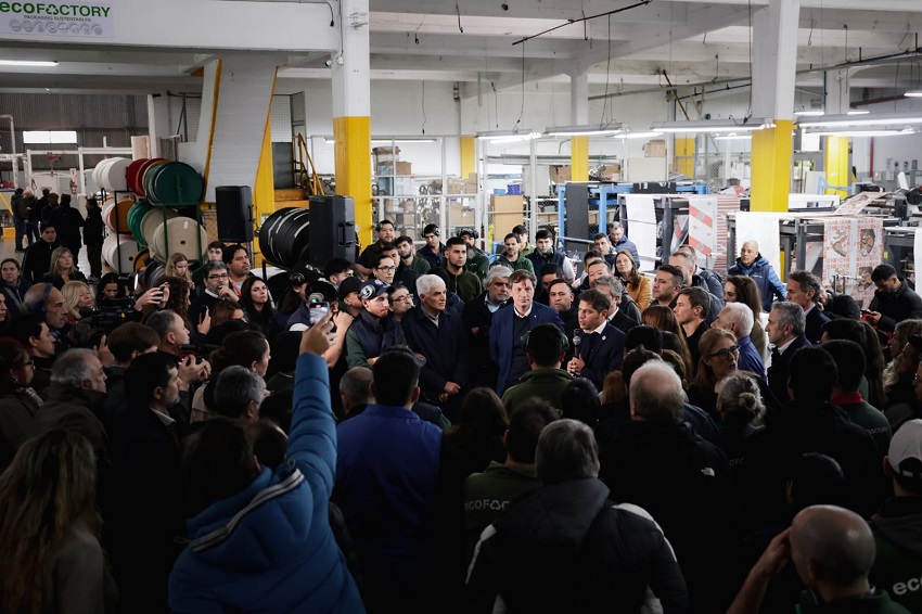 El gobernador de la provincia de Buenos Aires, Axel Kicillof, recorrió este martes una de las plantas de la empresa Ecofactory en el municipio de Vicente López y mantuvo una reunión con trabajadores, delegados sindicales del sector textil y empresarios pymes. Fue junto a los ministros de Infraestructura y Servicios Públicos, Gabriel Katopodis; de Producción, Ciencia e Innovación Tecnológica, Augusto Costa; de Trabajo, Walter Correa; y el concejal Lucas Boyanovsky.