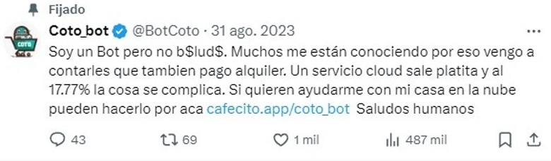 Una de ellas resaltó que “ni siquiera leyó el perfil” debido a que, como comentario fijado, el creador de la cuenta aclara que “paga alquiler”, que “la cosa está complicada” y que “si quieren ayudarlo” pueden hacerlo a través de la app conocida como ‘Cafecito’, en donde se suele pedir dinero a voluntad.