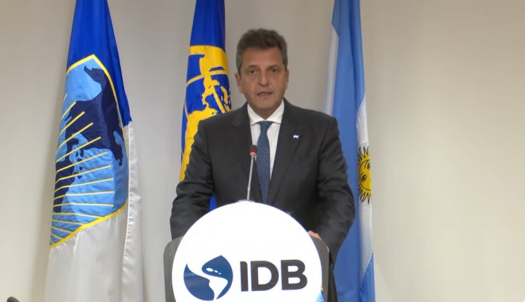 "Esto tiene por objetivo central completar un cupo de 1.300 millones de dólares de aquí a fin de año de financiamiento adicional del Banco Mundial y del BID, que de alguna manera para la Argentina son fundamentales para seguir fortaleciendo reservas, pero además seguir financiando proyectos para el desarrollo", señaló Massa esta tarde en una conferencia de prensa posterior al encuentro con funcionarios del BID.