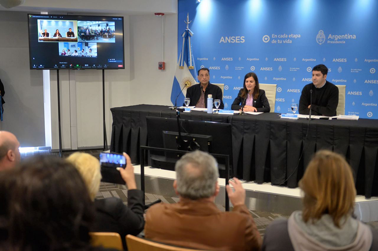 La directora ejecutiva de ANSES, Fernanda Raverta, presentó hoy la inclusión de los docentes secundarios de las ciudades mendocinas de Uspallata y Malargüe al régimen jubilatorio de frontera. Lo hizo acompañada por el secretario de Asuntos Previsionales de CTERA, Jorge Molina, y el director general de Planeamiento del organismo previsional, Ignacio Amigorena.