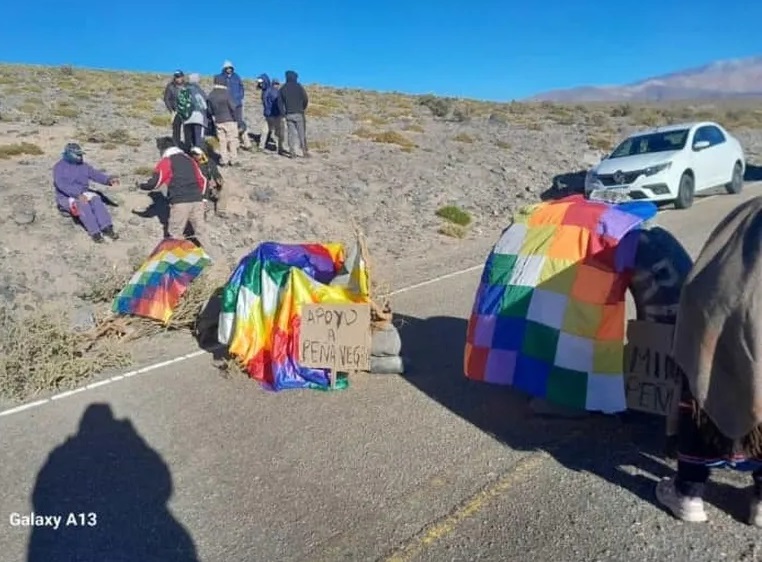 Comunidades originarias de Laguna Blanca llevan adelante un corte sobre la ruta provincial 43, a la altura de Los Pozuelos, en reclamo por la permanencia policial en la zona y en contra de la explotación minera.