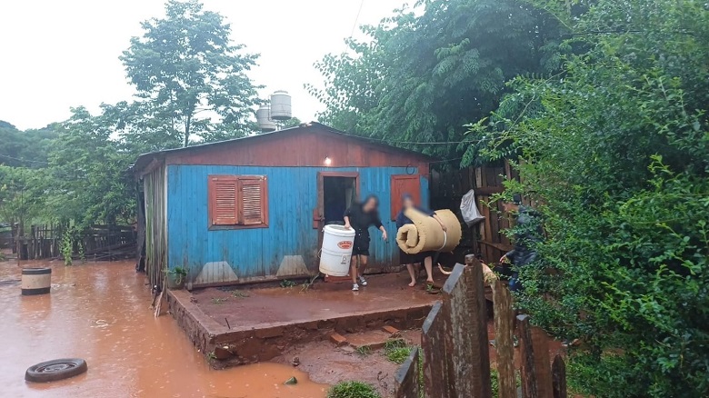 En Santa Ana, tres familias fueron evacuadas de sus viviendas situadas sobre la Ruta Provincial Nº 103, luego de sufrir pérdidas de sus pertenencias debido a las intensas lluvias. Una de las familias, que incluye a tres menores, fue trasladada a domicilios de familiares donde permanecerán por el momento.