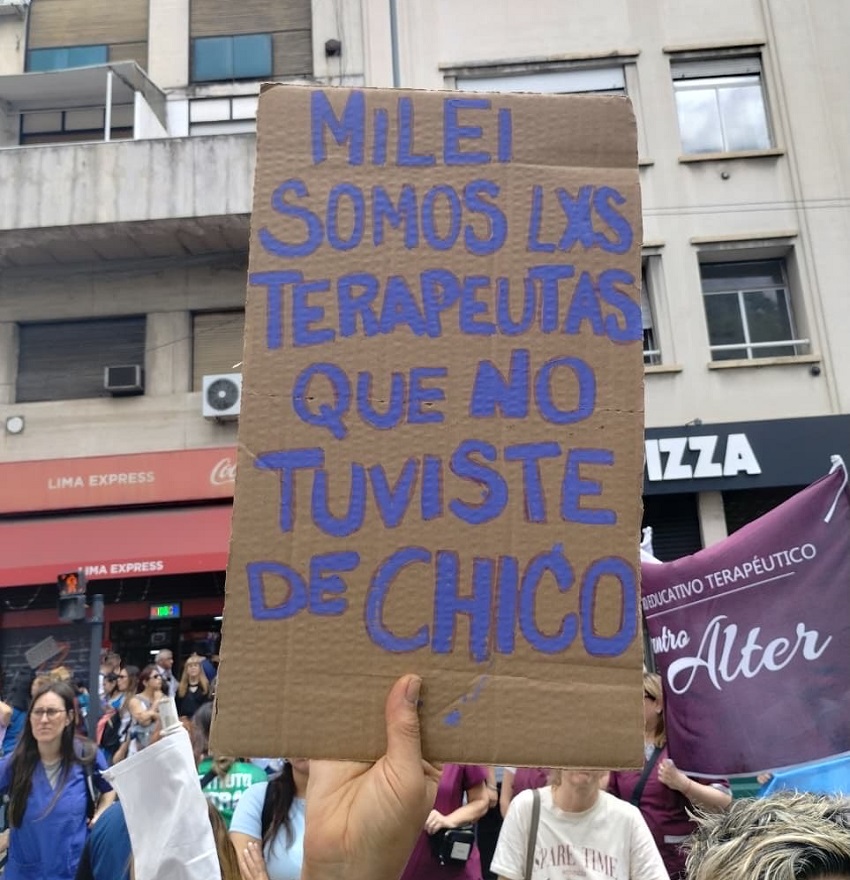 Durante la marcha, una médica aseguró a C5N: "Nos están pagando muy poco y las obras sociales pagan tarde. El nomenclador es muy bajo y es muy difícil decirle a una familia que necesita esa terapia que nos pague un copago o un poco más".