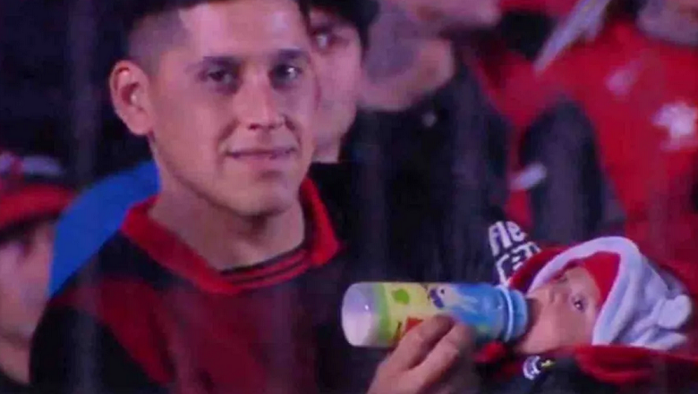 Este hincha "sabalero" se hizo viral en mayo cuando fue captado por la transmisión oficial de la Liga Profesional, dándole la mamadera a su hijo Tiziano en la tribuna.