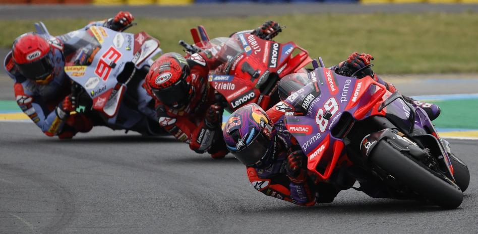 Jorge Martín ha sacado ganancia de pescadores en Le Mans con el primer doblete de triunfos del año, un fin de semana impecable de 'Martinator' que le convierte en más líder. Marcha ya con un Gran Premio completo de ventaja, pase lo que pase saldrá del GP de Catalunya aún como líder. Pero viene a toda velocidad, pese a sus caídas y sus ceros, Marc Márquez, que ha firmado dos monumentos en Le Mans en el Sprint y la Carrera batiéndose de tú a tú con los que mandan MotoGP ahora mismo y divirtiéndose con sus remontadas desde la 13ª plaza en grilla. Ya está ahí con su moto 'vieja'.