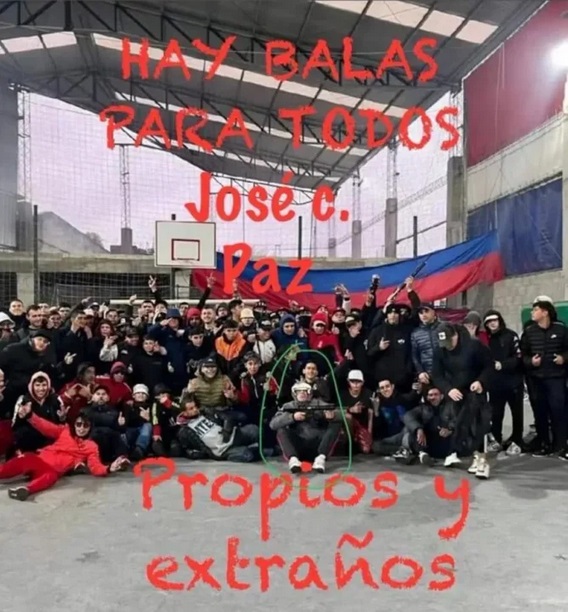 "Hay balas para todos. Propios y extraños", fue el mensaje de la barra brava por medio de una foto que se filtró en redes sociales, con una imagen de los delincuentes en una de las canchas del club.