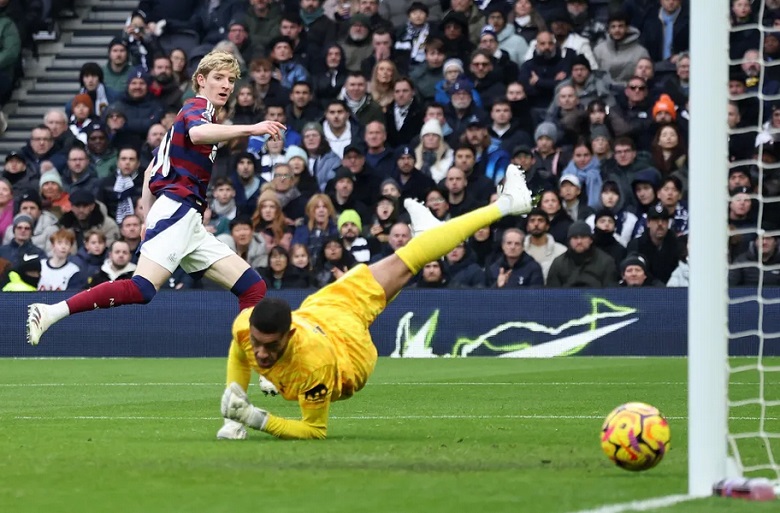 En el minuto 4, el Tottenham abrió el marcador con el gol que realizó Dominic Solanke. El lateral derecho español Pedro Porro envió un pase aéreo al área chica que terminó en un cabezazo del delantero británico.