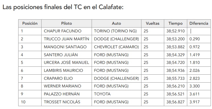 El relanzamiento se dio en el giro final y Chapur superó a Trucco en la segunda curva para quedarse con la victoria.