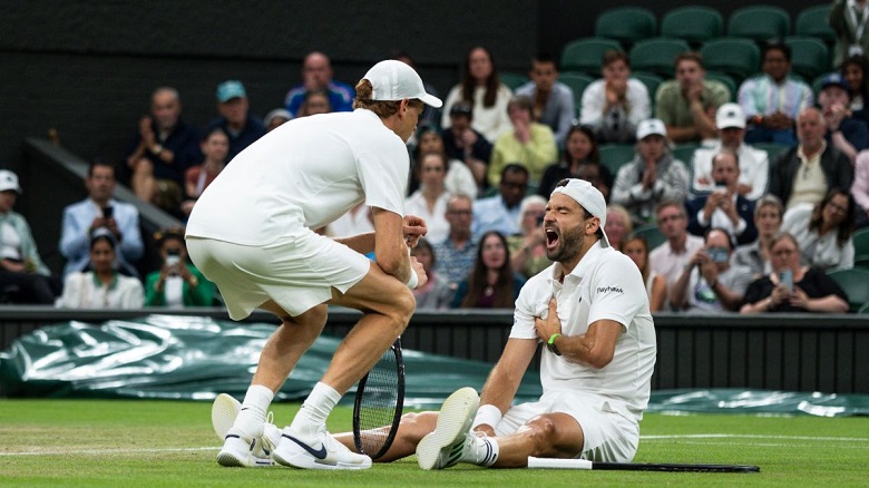 El italiano Jannik Sinner (1°) estaba siendo eliminado a las manos del búlgaro Grigor Dimitrov por 3-6, 5-7 y 2-2 cuando su rival debió retirarse debido a una lesión en el pectoral luego de un gran “ace” que no le permitió seguir jugando, por lo que quedó eliminado en los octavos de final en Wimbledon.