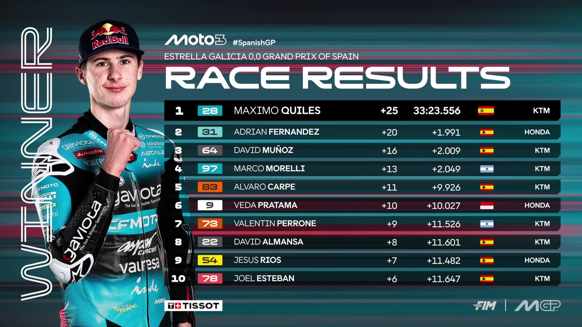 Moto 3: Marco Morelli llegó 4º y Perrone fue 7° en el Gran Premio de España