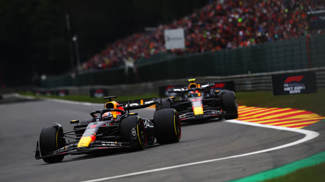 El bicampeón titular Max Verstappen ganó hoy por tercer año consecutivo el Gran Premio de Bélgica, escoltado por su compañero de equipo Sergio "Checo" Pérez, lo que permitió a Red Bull recuperar el 1-2 en la Fórmula 1 luego de seis carreras.