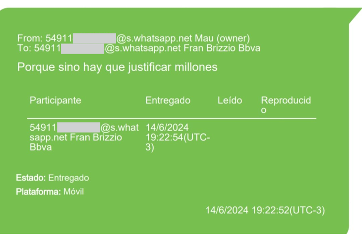 Ámbito accedió, en exclusiva, a un archivo que contiene 1.416 folios en los que consta la charla entre el mencionado Novelli y su partener Franco Brizio. El diálogo comenzó el 13 de enero de 2024 y concluyó el 16 de febrero de 2025, cuando el escándalo por el lanzamiento del token $LIBRA, ya había escalado mundialmente.