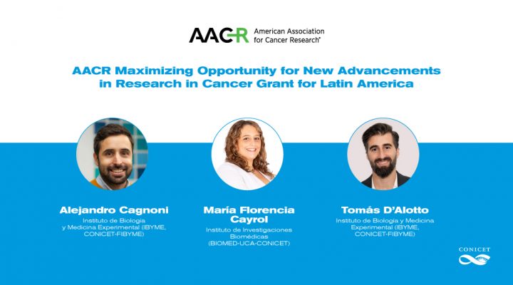 Los investigadores Florencia Cayrol, Alejandro Cagnoni y Tomás D’Alotto, cuyos proyectos de investigación se enfocan en el desarrollo de nuevas estrategias terapéuticas y herramientas diagnósticas innovadoras en el campo de la oncología, ganaron un subsidio de la American Association for Cancer Research.