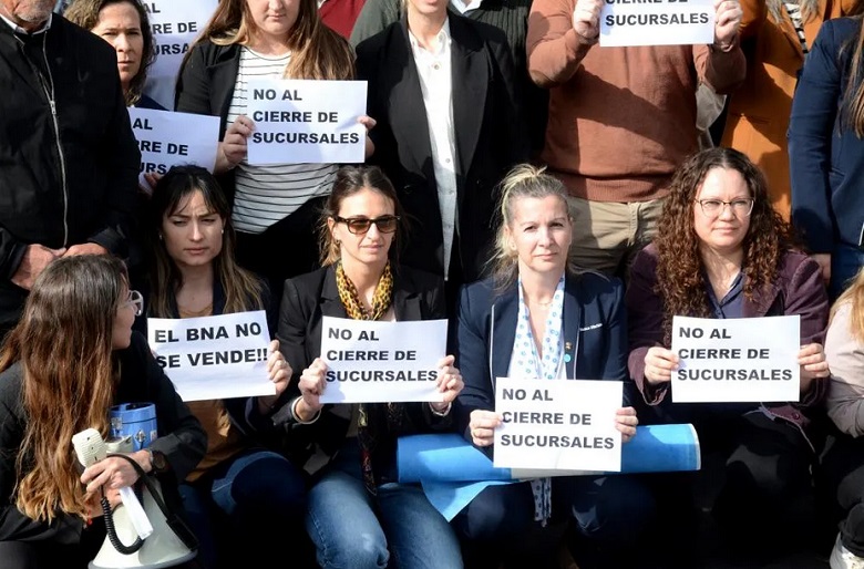 -El análisis que nosotros hacemos a nivel general, esto si nos traemos a la publicación del decreto 70/23, donde el gobierno ya incluía al Banco Nación en una nómina de empresas dependientes del Estado y sujetas de privatización que después, a través de una lucha gremial y de nuestra representación en el Poder Legislativo, nuestro compañero Sergio Palazzo y Carlos Cisneros, la firma de parte de toda la comunidad impidió que esto se llevara adelante, pero esto no se descarta, el gobierno sigue con la misma intención. Esto es quizá una muestra de que el cierre de las sucursales con un criterio de baja rentabilidad se pretenda llevar adelante no solamente en esta provincia, sino en otros lugares, porque también me han manifestado compañeros de otros puntos del país su preocupación porque, lógicamente, y en esto hago referencia a la carta orgánica fundacional de este banco, no es solamente un criterio de rentabilidad que lleva adelante sus actividades, sino también es una intención y un deber de fomento a las actividades regionales y de cumplir el rol que debe tener el Estado a través de su entidad financiera.
