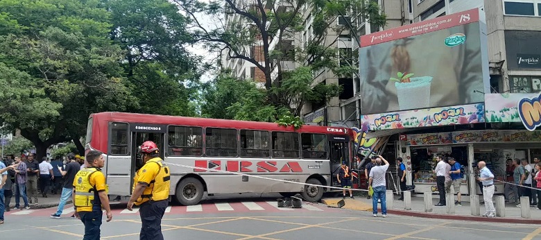 Este jueves al mediodía, una unidad de transporte urbano de la empresa Ersa (Línea 23) chocó violentamente contra un kiosco ubicado en la céntrica esquina de Boulevard Illia y Chacabuco.