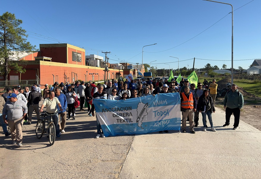 Los trabajadores de Algodonera Avellaneda realizaron una multitudinaria movilización por las calles de la ciudad para visibilizar la grave crisis que atraviesa la empresa, paralizada desde hace tres semanas. La medida, acompañada por la CGT del Departamento General Obligado, incluyó una caminata que partió del Parque Industrial y recorrió distintos puntos del centro de la ciudad.